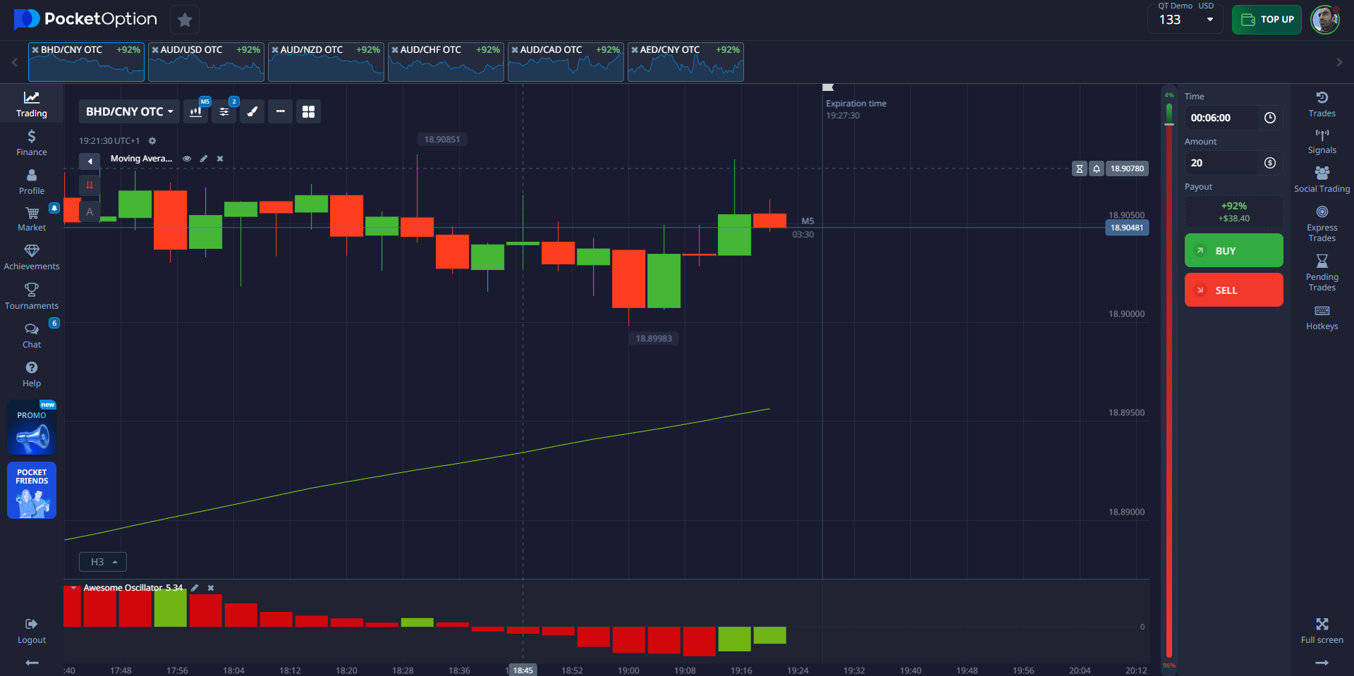 One of the most valuable features Pocket Option offers is its free demo account, which allows beginners to practice trading without risking real money. The demo account comes with virtual funds, giving you a realistic trading experience under live market conditions.